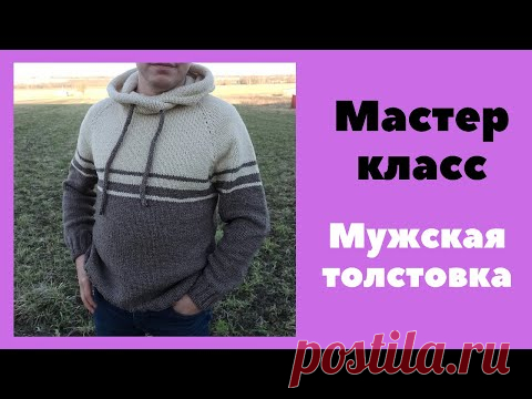 Подробный МАСТЕР КЛАСС. Вязание. Мужская толстовка с капюшоном спицами. Часть 1