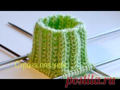 Узоры спицами. Резинка «Патронташ», вязание по кругу.