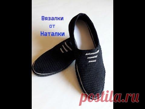 Вязаная обувь крючком . Мужские вязаные мокасины. Часть 3