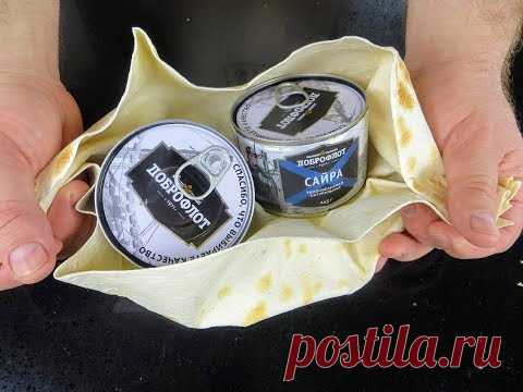 Поместите консервы внутрь лаваша и получите вкуснейший пирог без возни с тестом!