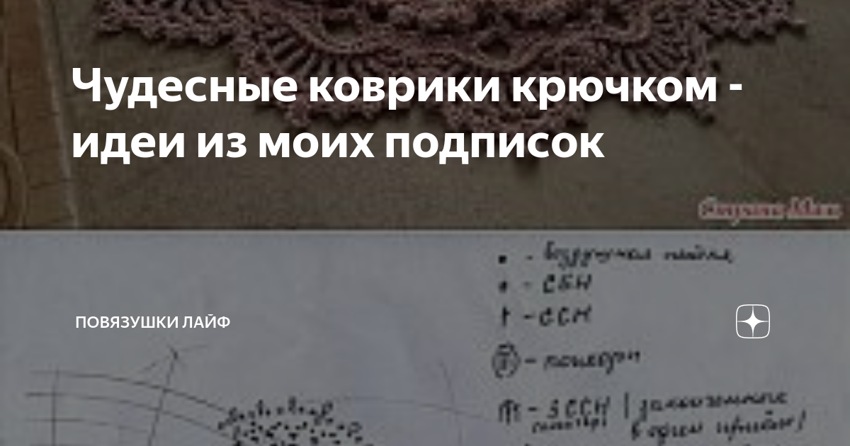 Чудесные коврики крючком - идеи из моих подписок Сегодня в моей подписке Pinterest я увидела интересную подборку ковров, связанных крючком. Мне очень нравятся такие изделия, а связать их можно по схеме любой салфетки. Спешу поделиться своими находками с Вами, дорогие читатели "Повязушек"!