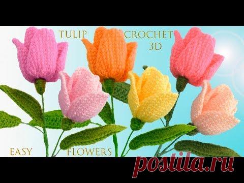 Como hacer Tulipanes a Crochet en punto 3D paso a paso tejido tallermanualperu