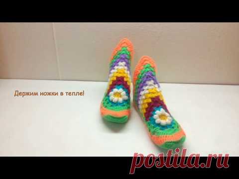 Следки из асимметричного мотива с цветком. Крючком тапочки. МК | 15.01.2019 // Slippers knitted - YouTube