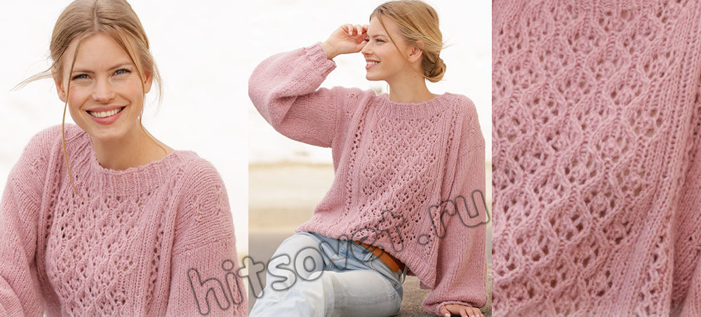 Свободный вязаный джемпер Seaside Watcher - Хитсовет Свободный джемпер Seaside Watcher, связанный спицами ажурным узором с рукавами – баллонами со схемами и пошаговым бесплатным описанием вязания.