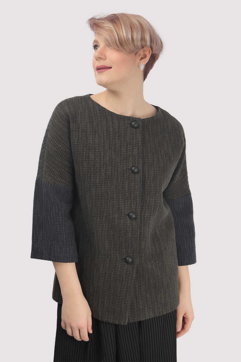 ЦЕНА С УЧЕТОМ СКИДКИ! Приятные итальянские ткани и фурнитура. Очень универсальная вещь. Отлично подойдет как под джинсы, так и платья. Состав ткани: вискоза 50%, хлопок 50%. Ткань плотная, не продувается, держит форму. Дополнительно укреплена дублерином внутри. Подкладка 100% вискоза. В подкладке 1 внутренний карман. Длина рукава 3/4. Размер: S-M(42-44-46) Длина 75см Максимально по груди 92см, бицепс максимум 28см(голая рука).