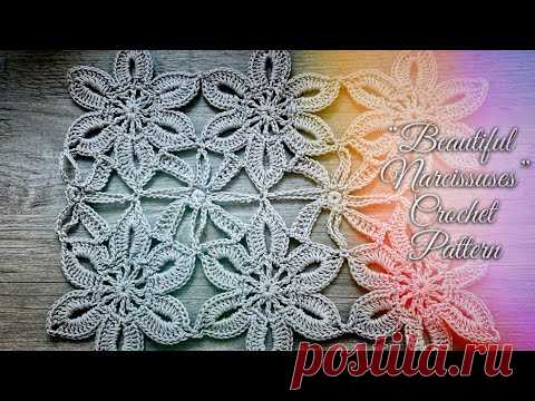 ВЯЗАНИЕ МОТИВАМИ КРЮЧКОМ "НАРЦИССЫ" / ПОДРОБНЫЙ МАСТЕР-КЛАСС ДЛЯ НАЧИНАЮЩИХ