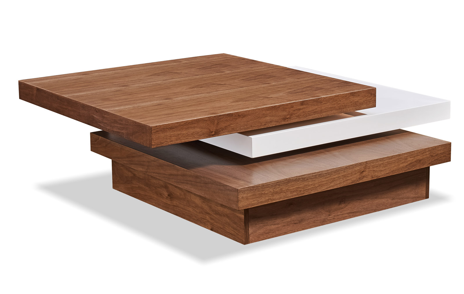 Стол журнальный Unity, орех/белый Оригинальная и функциональная деталь интерьера - журнальный столик из нескольких квадратных элементов. Две крайние части шпонированы орехом. Внутренняя часть - ...