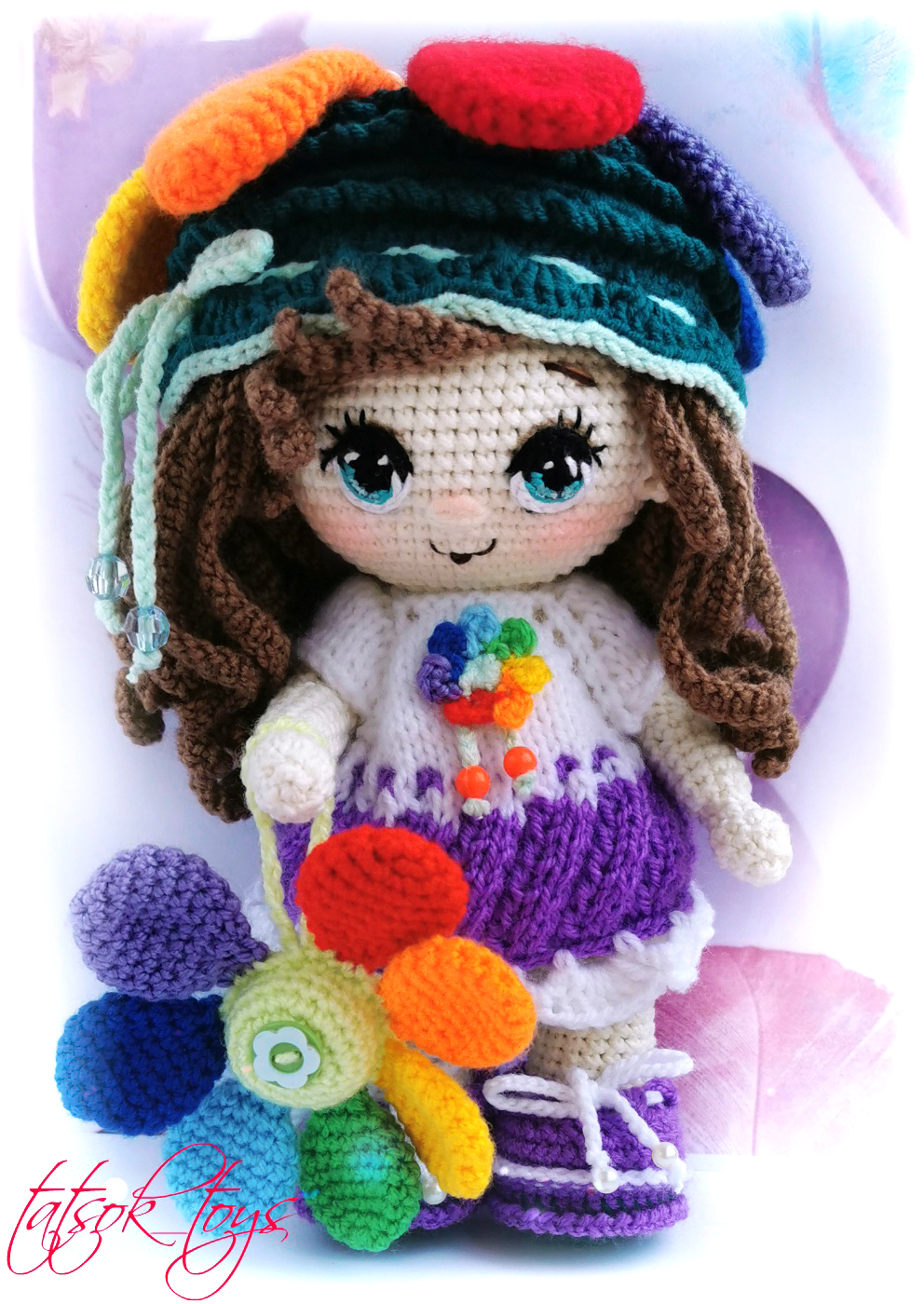 PDF Пупс малышка Цветик-семицветик крючком. FREE crochet pattern; Аmigurumi doll patterns. Амигуруми схемы и описания на русском. Вязаные игрушки и поделки своими руками #amimore - кукла в костюме цветка, куколка цветочек.