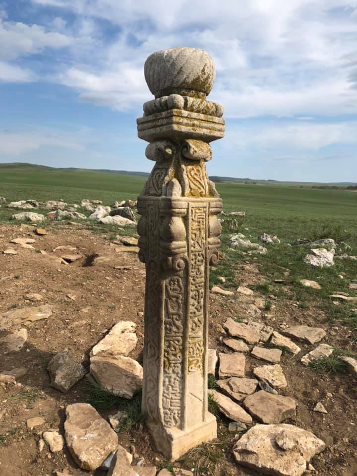 «Столбы украшены арабской вязью и окружены россыпью разноразмерных валунов! Вокруг некоторых столбов выложена каменная плитка, что даёт возможность думать, что столбы стояли в некоем помещении типа склепа, а плитка служила полом. Сами столбы выполнены из розового ракушечника, который не свойственен как ископаемое для тех мест! Да и родовая Тамга, вы...