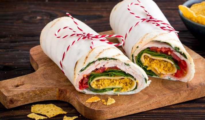 Ролл с индейкой, шпинатом, помидором и начос. Подробнее