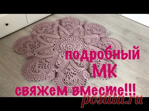 Розовый вязаный ковер 1 часть 1-7 ряд Crochet pink rug 1 part 1-7 row