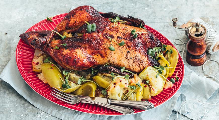 Утка с яблоками — ПУТЕШЕСТВУЙ ПО САЙТУ. Маленький лайфхак для этого традиционного рецепта: мясо утки получится еще более нежным, если утку предварительно отварить. Время на запекание в этом случае можно сократить. ИНГРЕДИЕНТЫ 1 утка весом 2,5–3 кг 8 зеленых яблок 4–5 зубчиков чеснока 2 ст. л. лимонного сока + сок для яблок 3 ст. л. абрикосового джема […]
