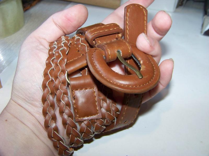 Коричневый ремень косичка средней толщины с овальной пряжкой и бронзовой фурнитурой за 75 грн. | Шафа