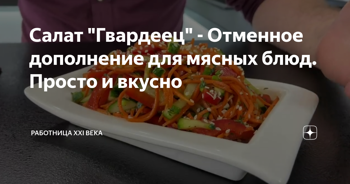 Салат "Гвардеец" - Отменное дополнение для мясных блюд. Просто и вкусно Салат получается очень вкусным и сочным. Такой салатик отлично подойдёт к горячему мясу. Он прост в приготовлении и не занимает много времени. Уверенна,что вам понравится, рекомендую :)