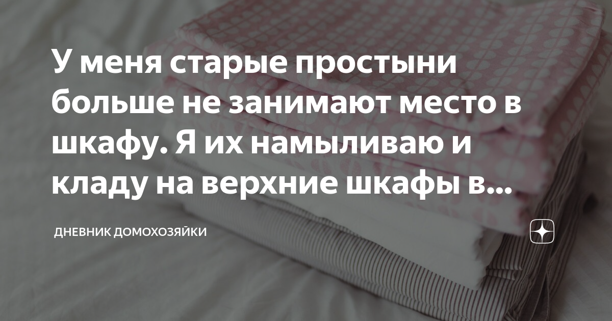 У меня старые простыни больше не занимают место в шкафу. Я их намыливаю и кладу на верхние шкафы в кухне, рассказываю для чего Вот никогда бы не подумала, что буду так делать, намыливать простыни и укладывать их на верхние шкафы в кухне. Эту идею я подсмотрела в записной книжке своей бабушки, такие книжки наверно были у всех людей того поколения, ведь электронных носителей не было и все записывалось как говориться на бумагу - рецепты, полезные советы, какие-то идеи для огорода.