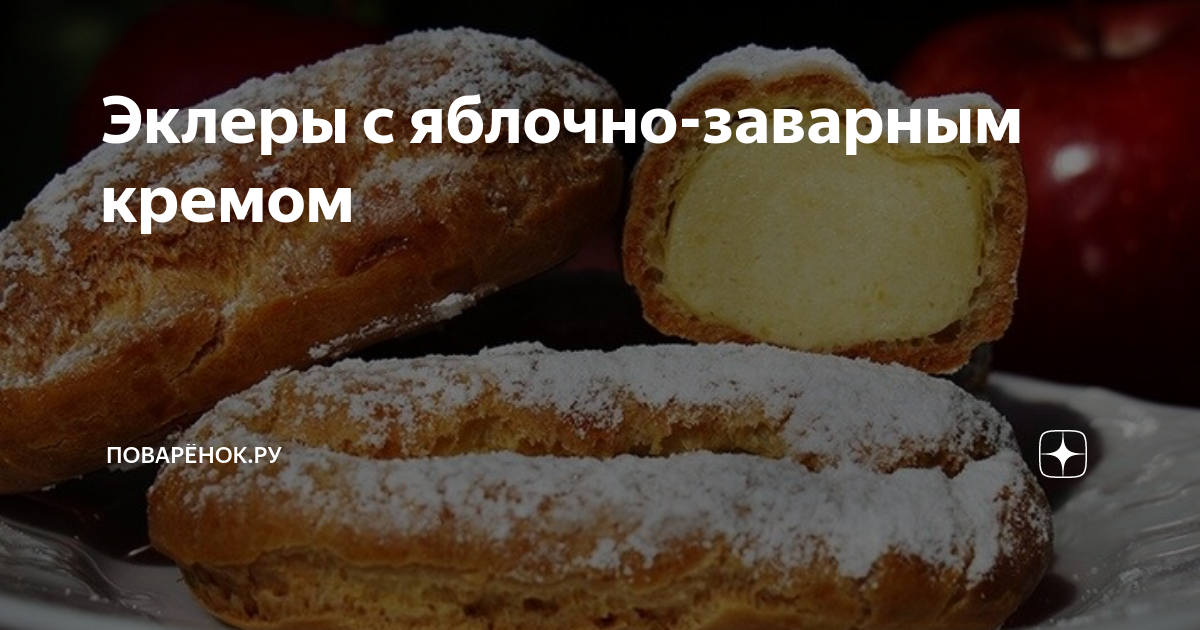 Эклеры с яблочно-заварным кремом Друзья здравствуйте! Сегодня рецепт очень вкусных эклеров с яблочно-заварным кремом. Крем получается с нежным яблочно-сливочным вкусом, очень вкусный.