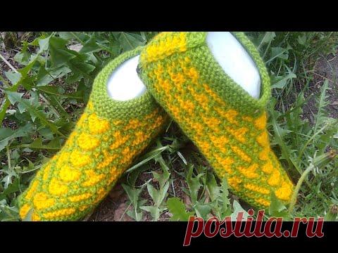 тапочки следочки на 2 спицах