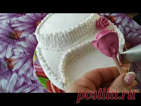Украшение БелковоЗаварнымКремом. Как украсить торт. How to decorate the cake with cream.