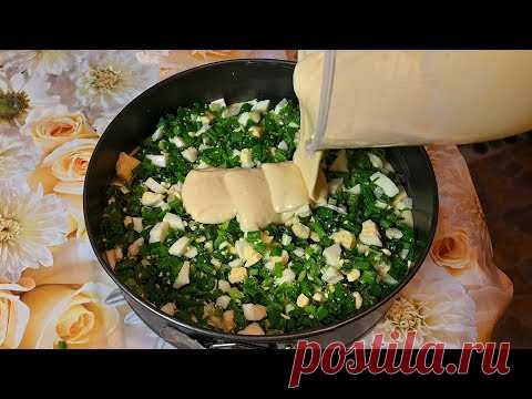 Вместо пирожков. ЛЕНИВЫЙ пирог с зеленым луком и яйцом, рецепт теста на кефире и сметане.