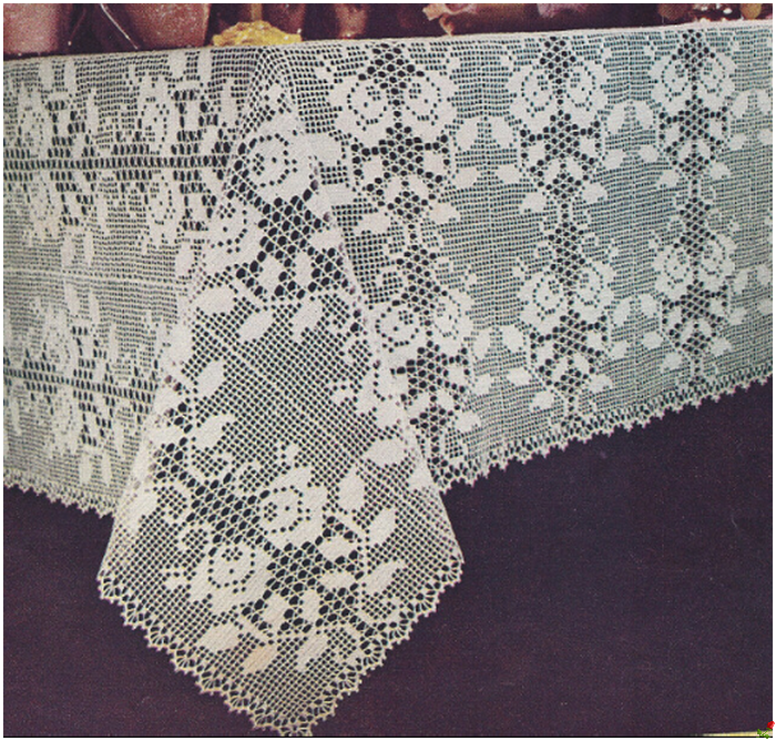 ФИЛЕЙНОЕ ВЯЗАНИЕ, СКАТЕРТЬ С РОЗАМИ.