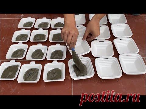 Excellent Cement Craft tips! How to make pots - Ideas from foam boxes, Plastic plates and Cement