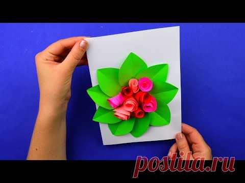 Как сделать открытку с розами из бумаги [Своими руками]