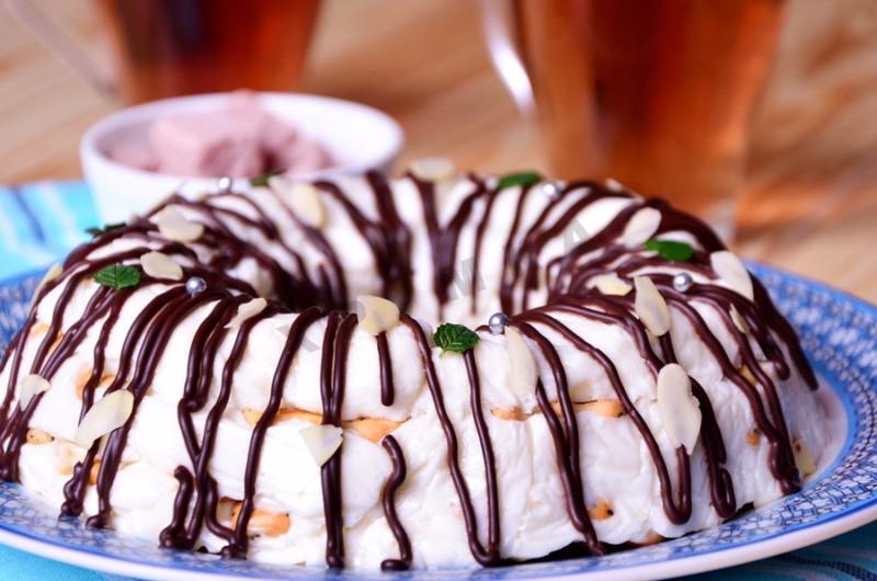- Шаг 1: Подготовьте необходимые ингредиенты. Вам понадобится свежая качественная сметана 20-30% жирности, сахар и сладкий крекер (можно с кунжутом). Заменить его можно любым песочным печеньем. Например, овсяное, обычное квадратное печенье с ароматом топленого молока, сахарное.Шаг 2: В стакан всыпьте быстрорастворимый желатин. Залейте его холодной водой (около 100 мл). Оставьте на 10-15 минут для набухания. Если вы используете не быстрорастворимый желатин, перед применением обязательно прочитайте инструкцию.Шаг 3: В емкости соедините сметану с сахаром или сахарозаменитель, который не боится термической обработки. Взбейте венчиком до однородного состояния. Чтобы кристаллы сахара полностью растворились, оставьте взбитую массу на 5 минут. Сметану можно заменить жирными сливками (35%) или сыром маскарпоне. Для аромата можно всыпать ванильный сахар (1 ст. л.) или ванилин (на кончике ножа). Помните, если с ванилином переборщить, он даст горечь и испортит вкус десерта.Шаг 4: Набухший желатин переложите в сотейник. Прогрейте его (примерно до 70-80 градусов) на слабом огне до полного растворения. Обязательно помешивайте. Важно не допустить, чтобы желатин закипел, иначе он потеряет свои желирующие свойства. Можно подогреть его в микроволновке по 5-10 секунд.Шаг 5: Быстро и тщательно размешивая крем, влейте в него горячий растопленный желатин. Для взбивания лучше использовать глубокую высокую емкость, чтобы избежать разбрызгивание.Шаг 6: Какую емкость для торта можно использовать? Выбирайте круглую глубокую форму (у меня с отверстием по середине). Застелите ее пищевой пленкой. Чтобы из разъемной формы не выливалась сметана, обязательно застелите пленкой не только внутри, но и плотно обмотайте ее снаружи. Также можно использовать эмалированную миску, силиконовую, пластиковую форму или разложить десерт по порционным креманкам. Налейте небольшое количество сметанного крема.Шаг 7: Выложите равномерный слой крекера.Шаг 8: Продолжайте чередовать слои сметаны и крекеров пока они не закончатся. Последним будет густой слой крема. Он должен полностью покрыть печенье, так чтобы оно не проглядывало. По желанию сметанный крем можно смешать с крекерами и просто вылить в форму. Дайте десерту полностью застыть в холодильнике. На это уйдет примерно 2-3 часа. Хорошо оставить торт на ночь, так он еще лучше пропитается.Шаг 9: Теперь быстро, но осторожно переверните его на плоское блюдо. Снимите пищевую пленку. Если вы готовите торт в эмалированной посуде, опустите ее на 10 секунд в горячую воду. Верхняя часть желе подтает и торт легко и без проблем выпадет из формы на тарелку. Украсьте его по своему вкусу. Я полила растопленным горьким шоколадом, листиками свежей мяты, лепестками миндаля и сахарными бусинками. Угощайтесь!