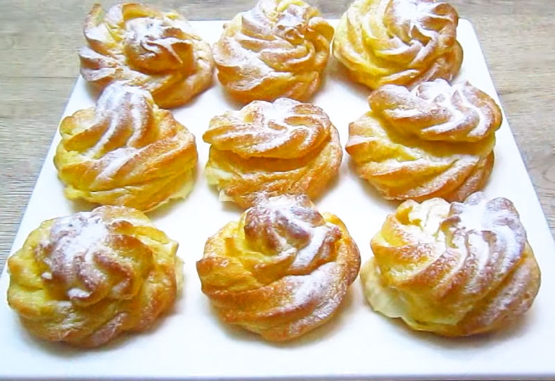 Воздушные пирожные с нежным кремом Простая и очень вкусная выпечка из обычных продуктов. Тесто заварное, мягкое и воздушное. Крем сметанный, заварной с изумительным вкусом.