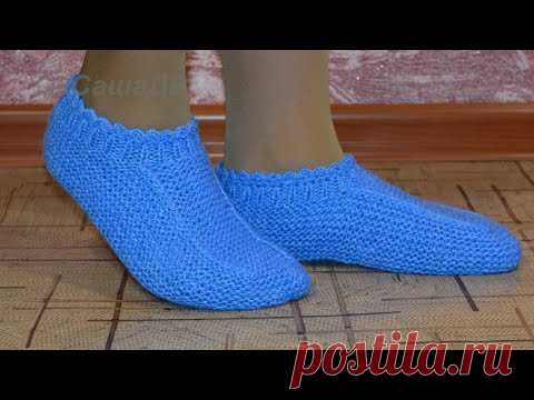 Бесшовные тапочки - следки спицами. Seamless knitting slippers.