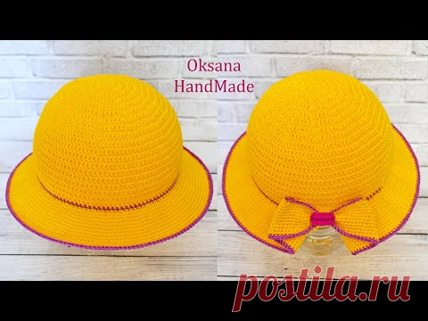 Шляпа крючком с ввязанным бантом. Мастер класс. Women's crochet hat