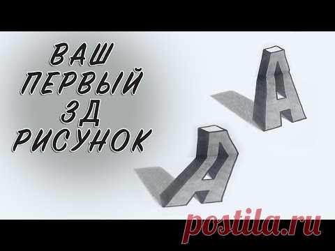 Ваш Первый 3Д Рисунок. Как Очень Просто Нарисовать 3Д Рисунок. Рисунок Буквы А