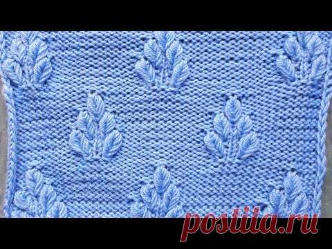 ШИКАРНЫЙ УЗОР ОБЪЕМНЫЕ ЛИСТЬЯ на изнаночной глади для вязания спицами свитера, шапки, джемпера