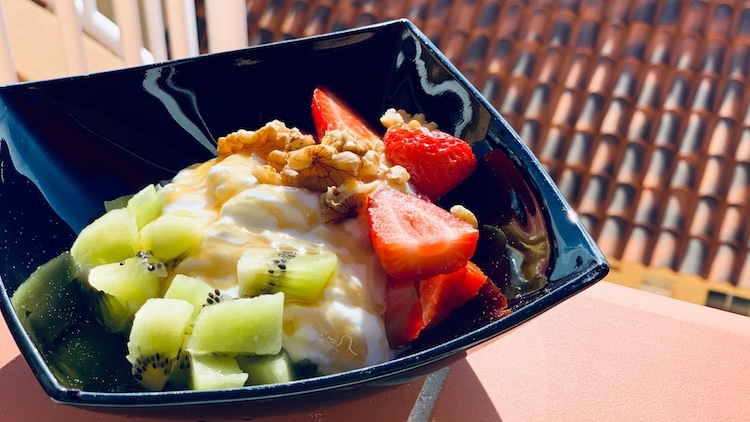 Фруктовый салат с йогуртом - ПП-рецепт за 5 минут Фруктовый салат с клубникой и киви это отличный ПП Завтрак, рецепт которого Вы можете найти в категории Салаты, Фрукты. Инвентарь для приготовления: Без инвентаря. КБЖУ одной порции готового блюда: Ккал . г Белка, . г Жира, г Углеводов.