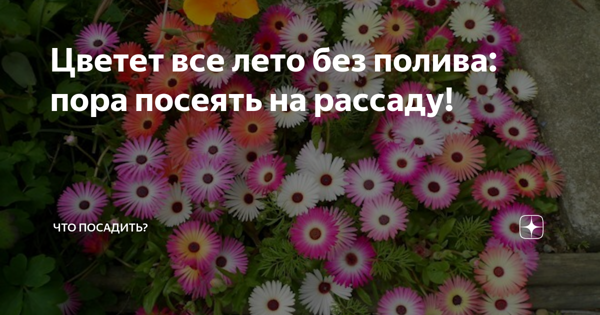 Цветет все лето без полива: пора посеять на рассаду! Красиво и обильно цветущая ромашка из Юго-Восточной Африки станет интересным акцентом в ваших ландшафтных композициях. Ее яркие разноцветные цветы, будто рассыпанные щедрой рукой, укрывают коротенькие кустики так, что и листочков не видать. Потрясающе красиво! Цветет мезембриантемум все лето до самых морозов. Название "хрустальная ромашка" получено благодаря одной из разновидностей