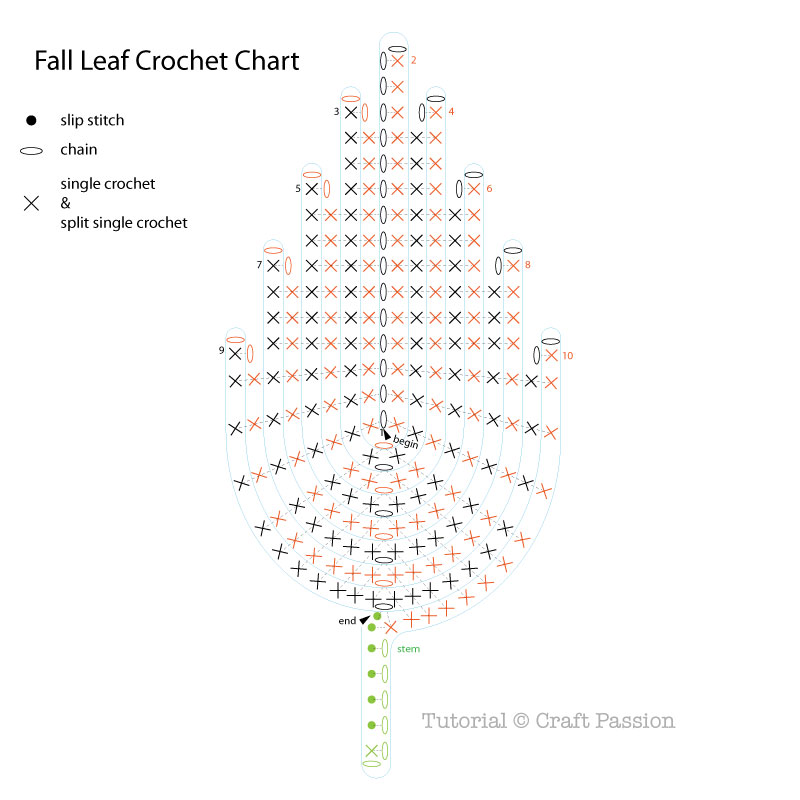 Fall Leaf - Бесплатный шаблон для вязания крючком | Craft Passion - бесплатный шаблон и учебник