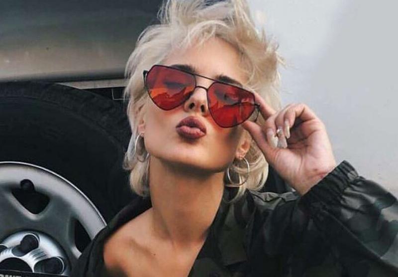 Треугольной формы в металлической оправе очки от солнца с красной линзой за 200 грн. | Шафа