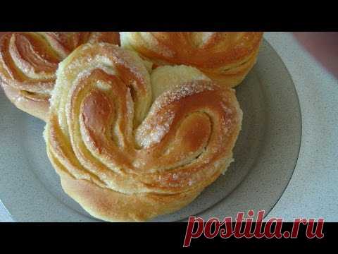 6. Сладкие булочки. Sweet buns Ингредиенты: 250 мл молока, 1 пакетик сухих дрожжей, 1 яйцо, 3 ст. л. сахара, щепотка соли, 6 ст.л. раст. масла, 500 гр. муки. Для смазки 50 гр. маргарина, и сахар. В теплое молоко добавить яйцо, сахар, соль, перемешать, добавить масло и дрожжи все перемешать и порциями добавлять муку. Замесить не очень крутое тесто. Оставить на час или пока не удвоится в размерах. Выкладываем на стол делим на шарики, каждый шарик раскатываем в пласт, смазы...