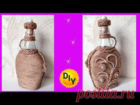 Как сделать бутылку из джута с вензелями. Очень просто своими руками. DIY/рукоделие