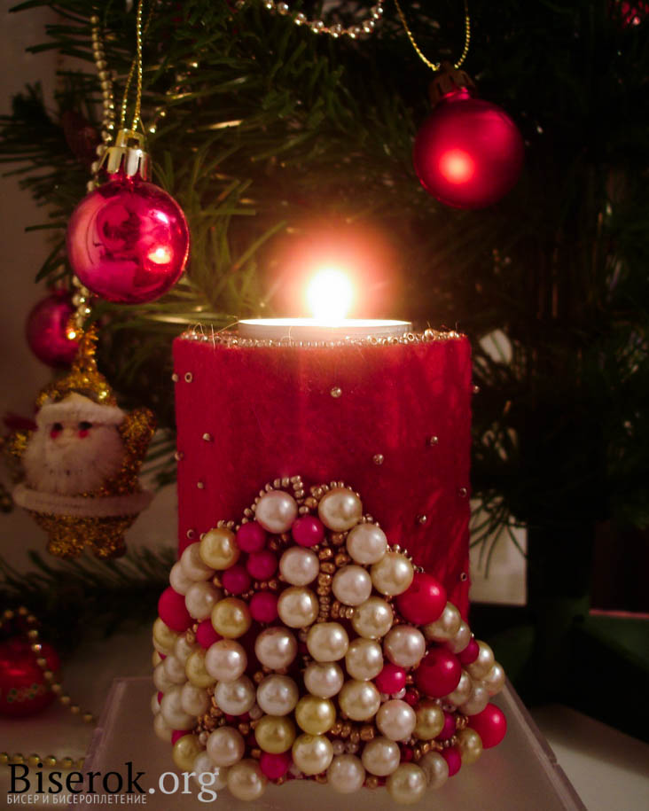 МК Подсвечник Новогодние изделия из бисера, Разные изделия из бисера – Бисерок Как сделать прекрасный подарок на Новый Год. Мастер-класс подсвечник своими руками.