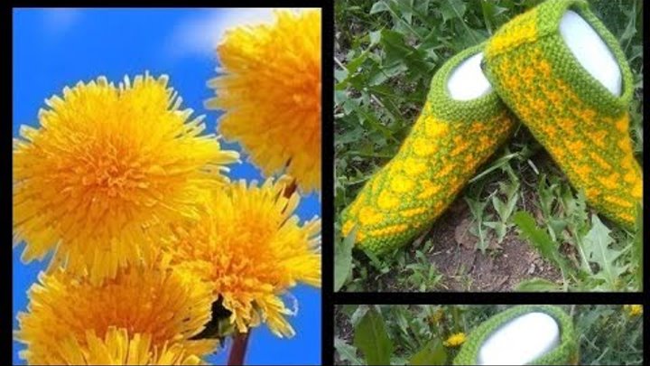 "ОДУВАНЧИКИ"МК ПОЛНАЯ ВЕРСИЯ/ТАПОЧКИ-СЛЕДОЧКИ НА ДВУХ СПИЦАХ БЕЗ ШВОВ