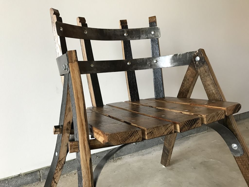 Стул из бочки из-под виски Этот необычный стул мастер сделал из старой бочки из-под виски. Мастер говорит, что несмотря на кажущуюся простоту, такой стул не так-то просто было сделать. Инструменты и материалы:-Старая бочка из-под виски;-Дюбеля;-Болты;-Столярный клей;-Полиуретановое покрытие;-Резиновые накладки;-Циркулярная