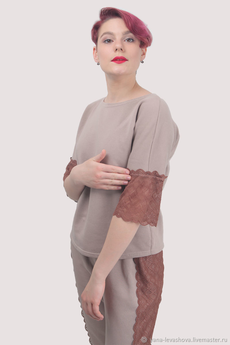 Костюм спортивный повседневный бежевый с кружевом и лампасами – заказать на Ярмарке Мастеров – LQ4MIRU | Костюмы, Москва