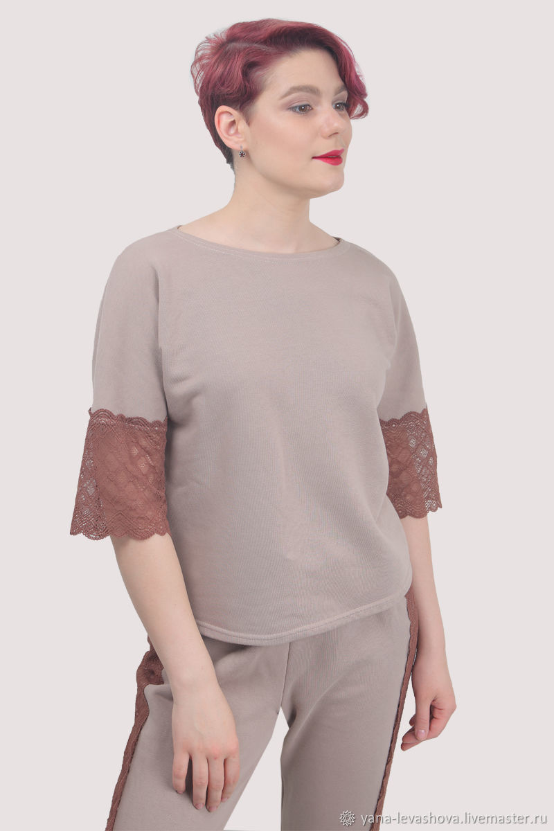 Костюм спортивный повседневный бежевый с кружевом и лампасами – заказать на Ярмарке Мастеров – LQ4MIRU | Костюмы, Москва