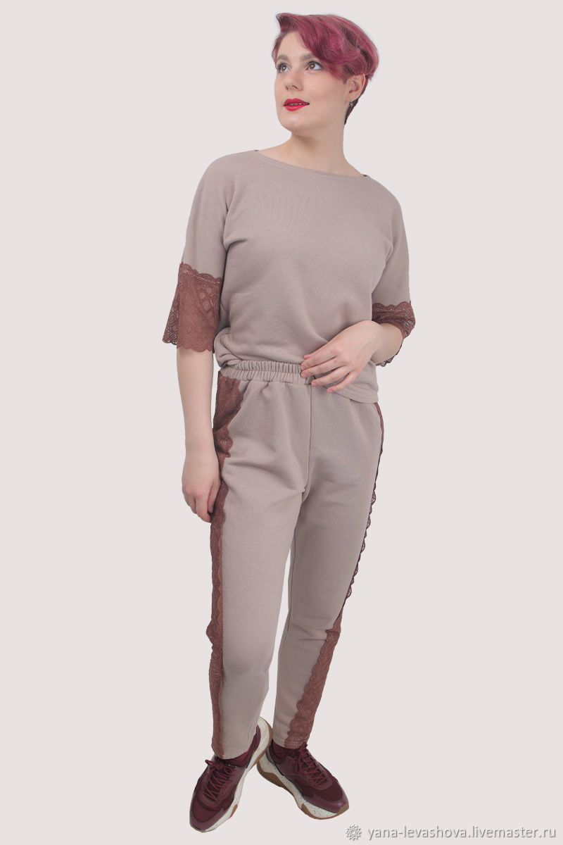 Костюм спортивный повседневный бежевый с кружевом и лампасами – заказать на Ярмарке Мастеров – LQ4MIRU | Костюмы, Москва