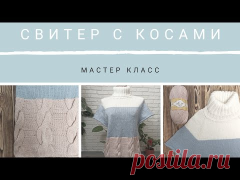 СВИТЕР СВЕРХУ БЕЗ ШВОВ С КОСАМИ. ПОДРЕЗЫ. ПОДРОБНЫЙ МК. ЧАСТЬ №4