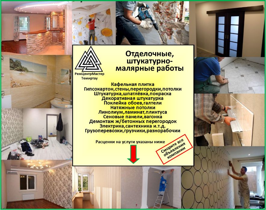 Отделочные работы офисов,квартир,коттеджей,производственных помещений - Отделка / ремонт Темиртау на Olx