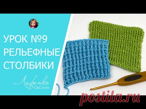 Как вязать выпуклые и вогнутые столбики с накидом. Рельефные лицевые и изнаночные столбики крючком. - YouTube