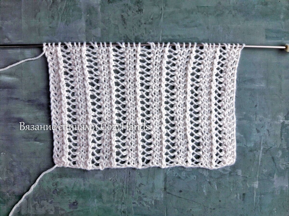 Простой двухсторонний ажурный узор спицами для палантина, летней маечки, кардигана | Вязание спицами CozyHands | Яндекс Дзен