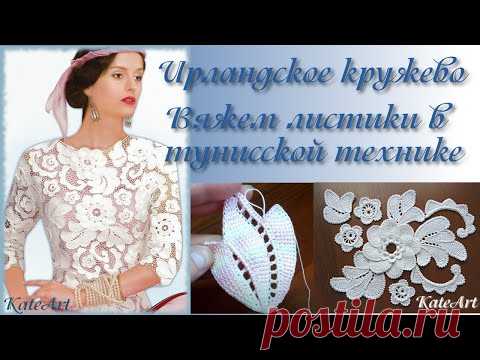 МК - вязание листиков в тунисской технике для ирландского кружева. Irish Crochet & Tunisian Crochet.