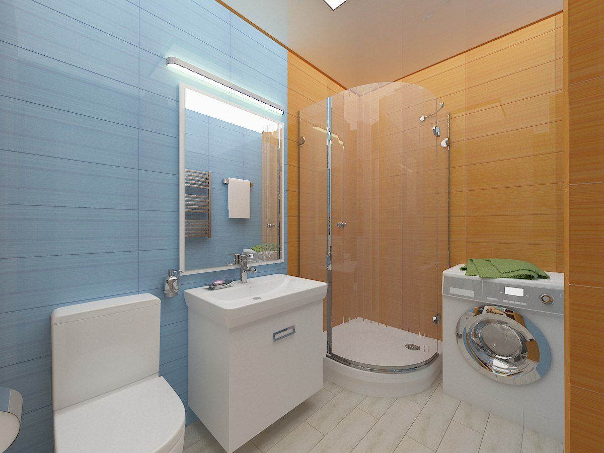 Сдержанно-яркий интерьер совмещённого санузла радует. Вы согласны?